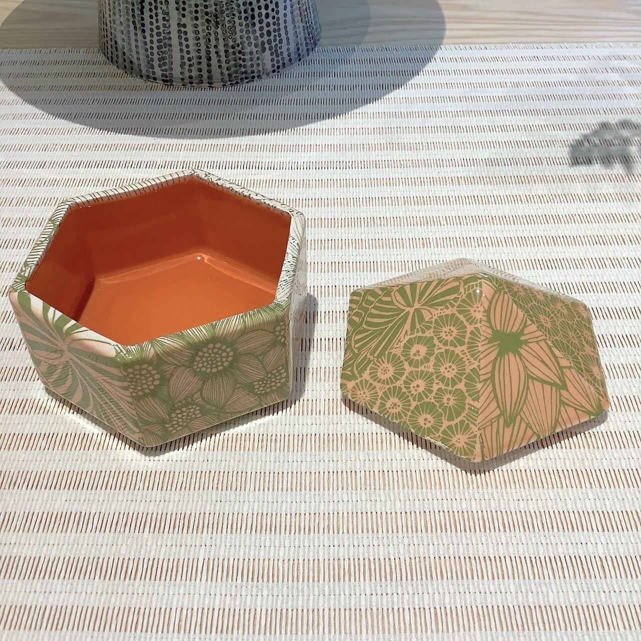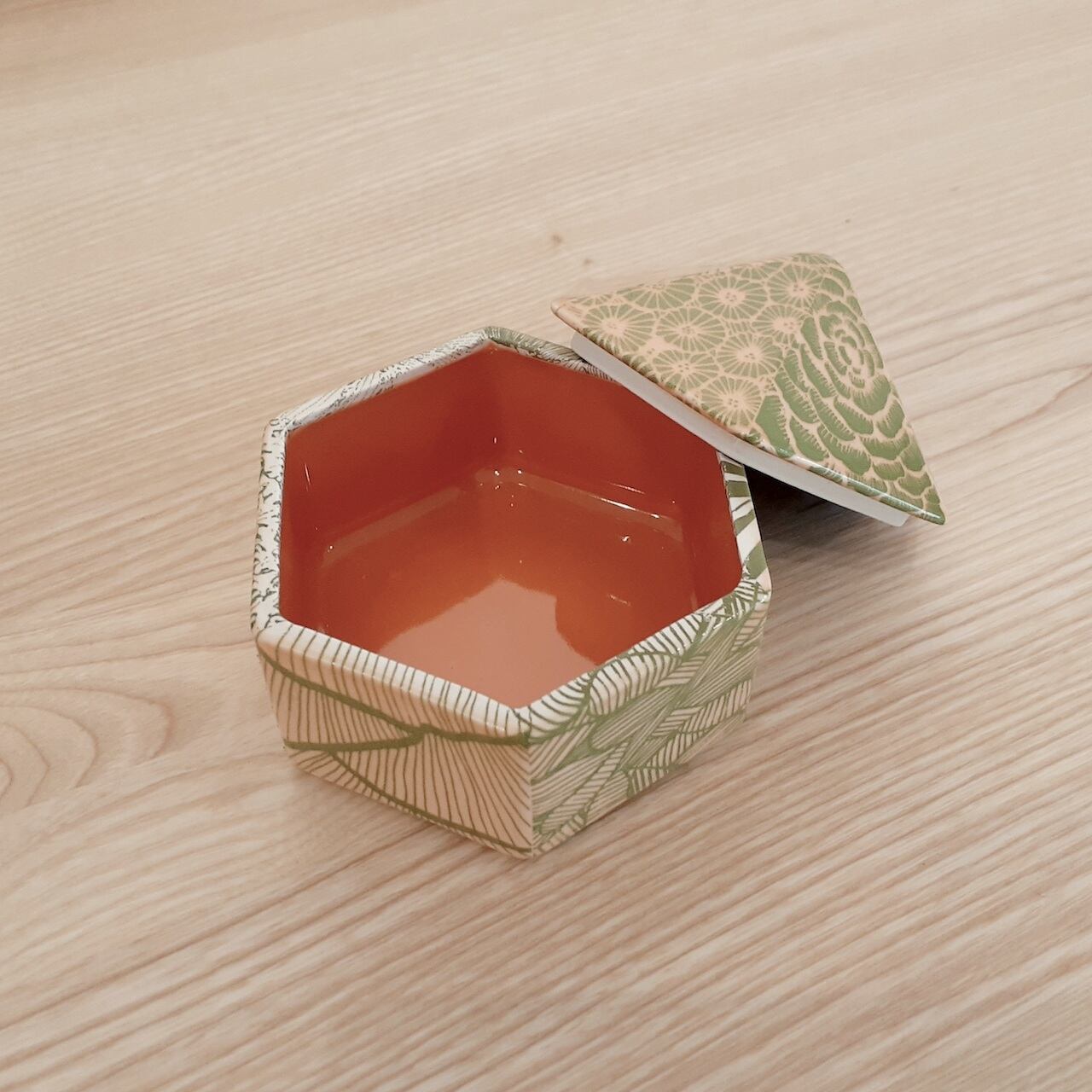 一面だけパターン部分に釉薬の盛り上がりがあり凹凸しています。あまり他のヘキサゴンジャーでは見られないオリジナリティーがあります。