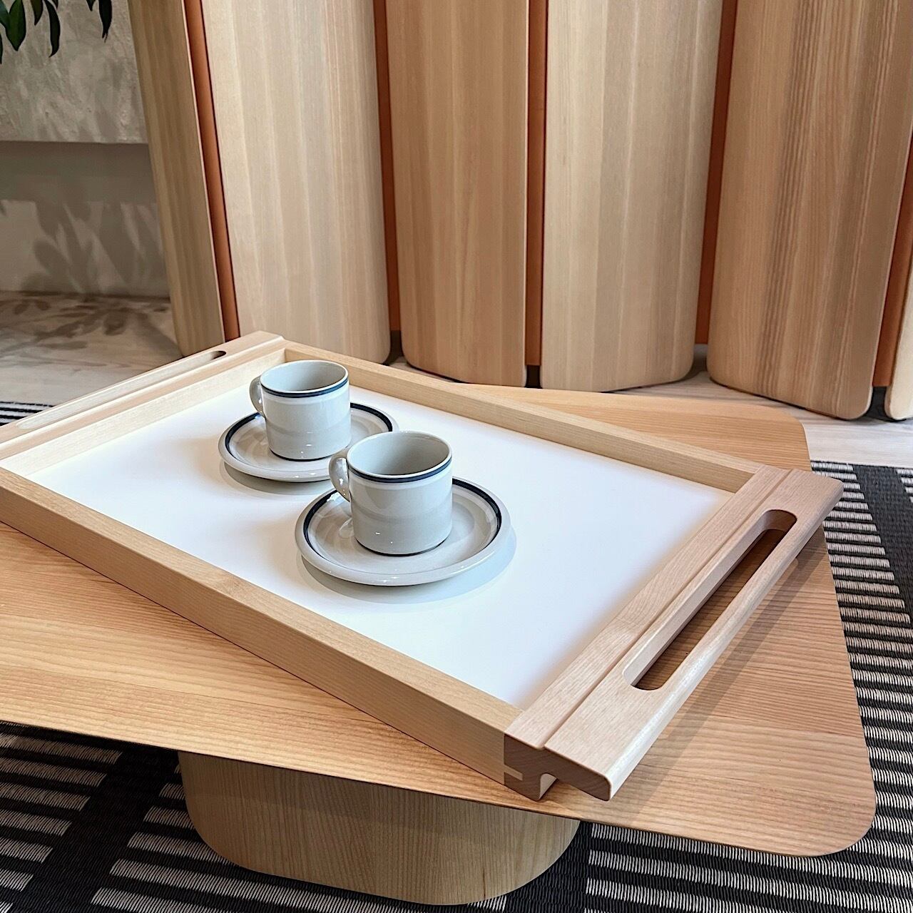 アルヴァ・アアルトが1960年代にフィンランドの教会のためにデザインしたALVAR TRAY(アルヴァトレイ)です。製作したNIKARIはアアルトのパートナーとして建築家具を形にしてきた家具職人です。このトレイはアアルトとNIKARIの長きにわたるコラボレーションに敬意を払い2014年に製品化されたものです。バーチ無垢材とホワイトラミネートのシンプルなデザインは時を超えても不変的な魅力を備えます。ALVAR TRAYは現在でも当初の教会「ラケウデンリスティ」で使用されています。